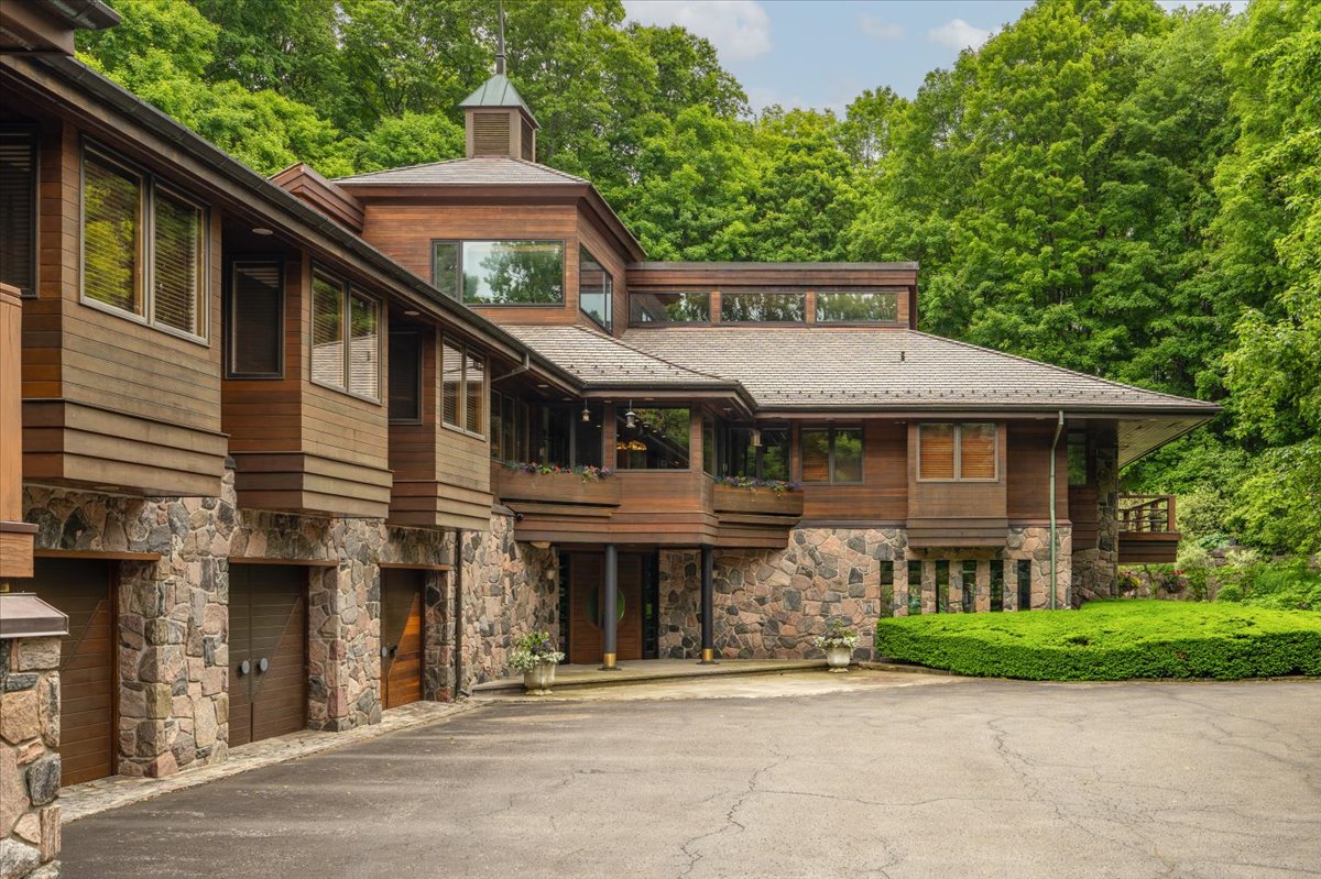 On the ground level of the home past the garages is a self-contained apartment with its own exterior entrance. The apartment has its own kitchen, living room, bedroom and bathroom. The apartment overlooks the side yard.
